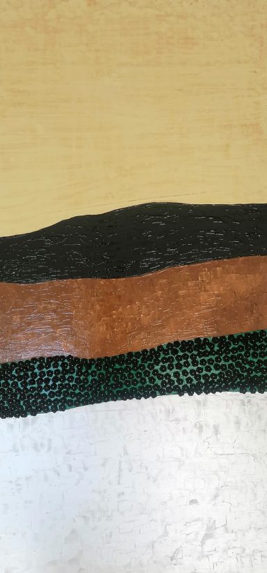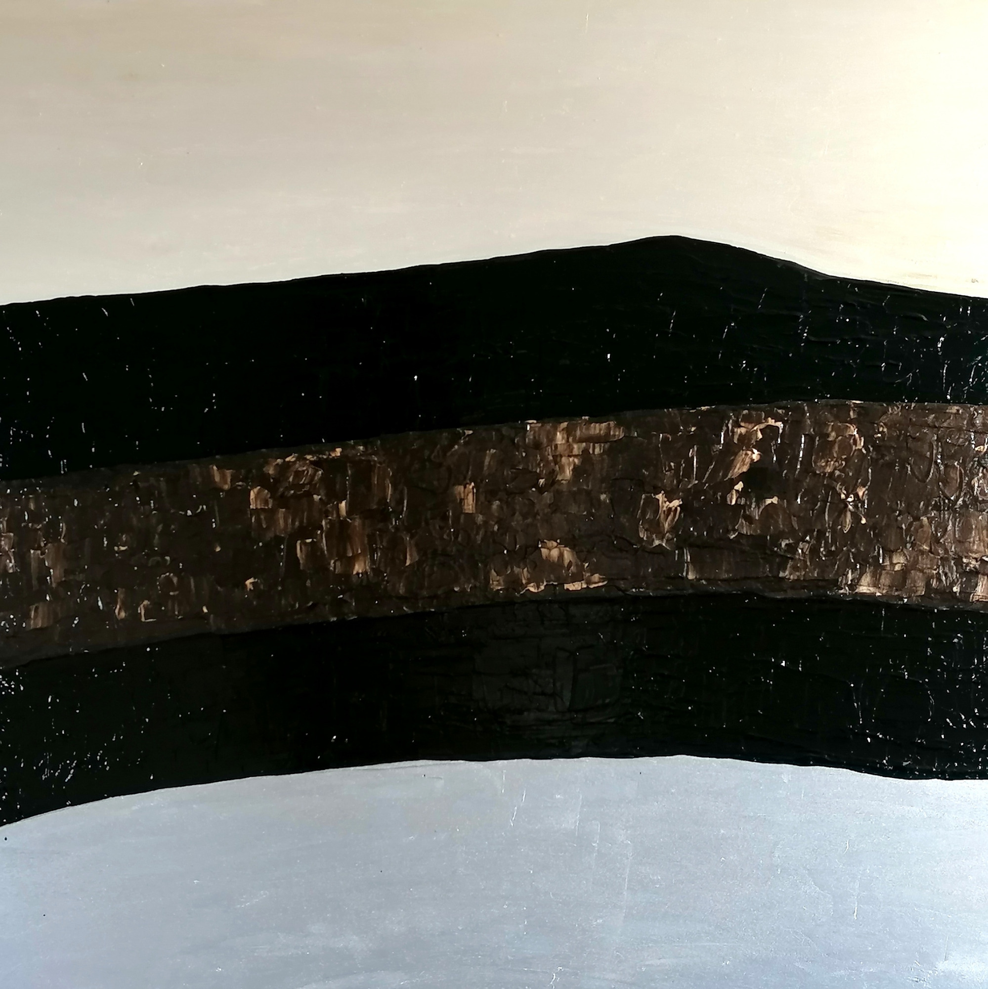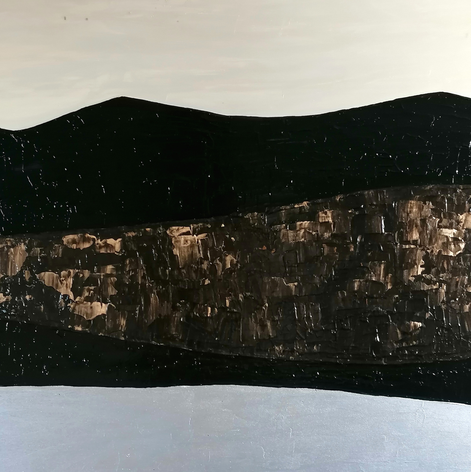 Die Schichten und die Ebenen bilden Landschaften der Erinnerungen. Schwarz wie die Kohle können sie in die Tiefen blicken.