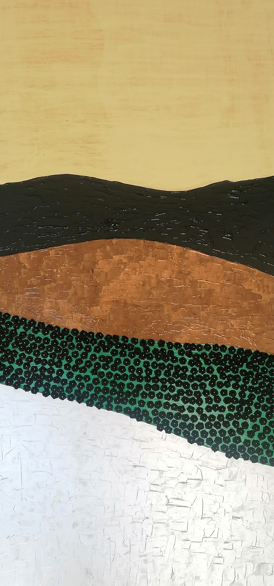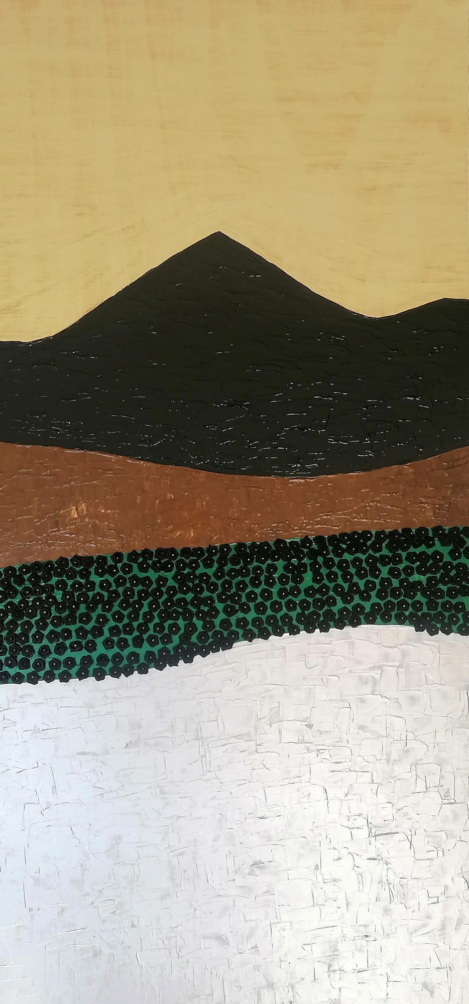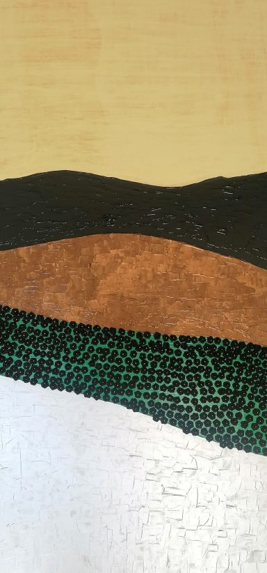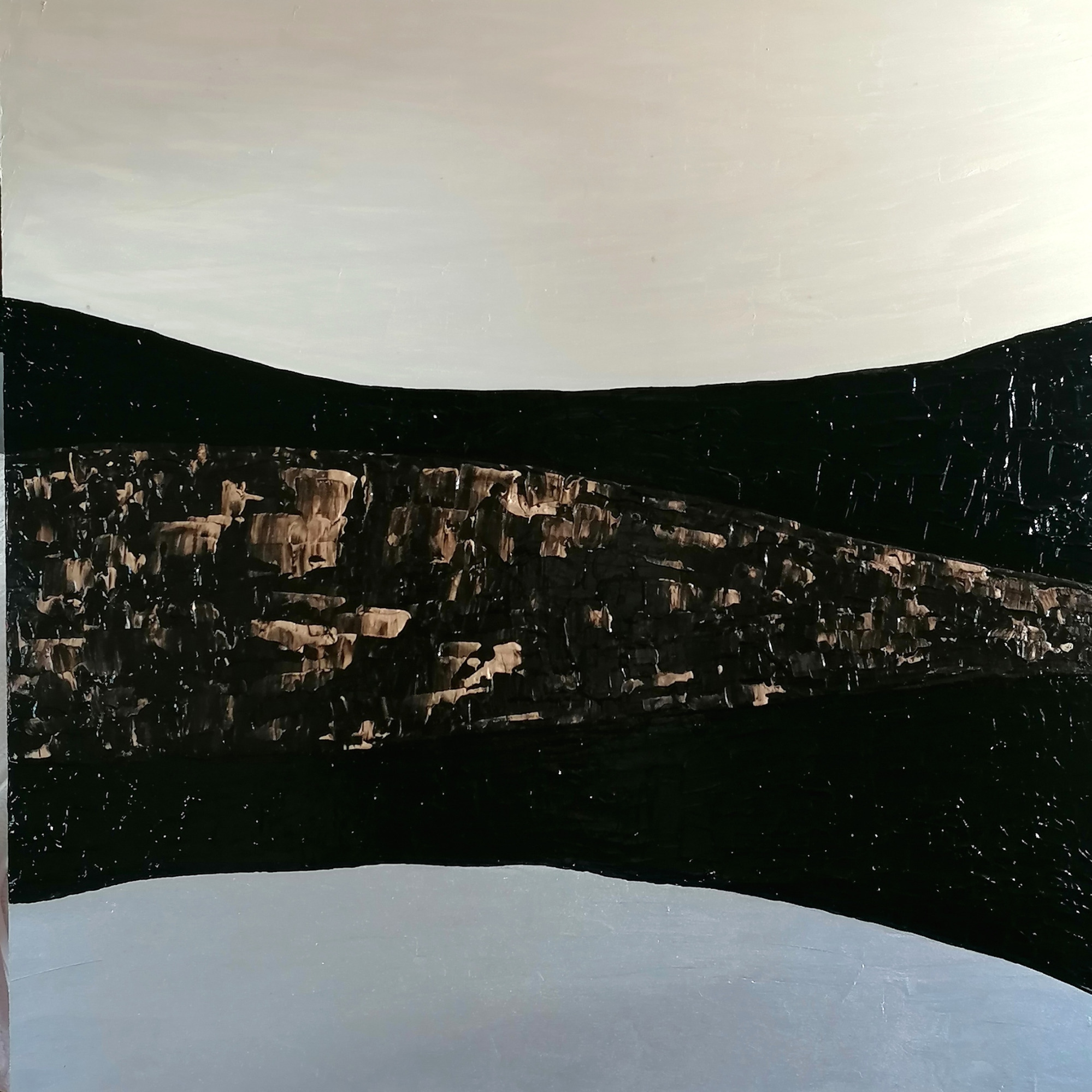 Die Schichten und die Ebenen bilden Landschaften der Erinnerungen. Schwarz wie die Kohle können sie in die Tiefen blicken.